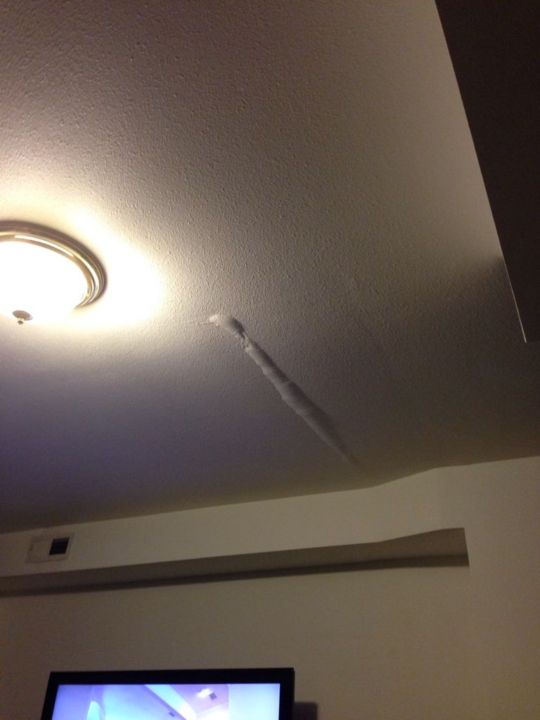 Then of course as we sat down for dinner downstairs on the couch, my dad pointed out the ceiling.