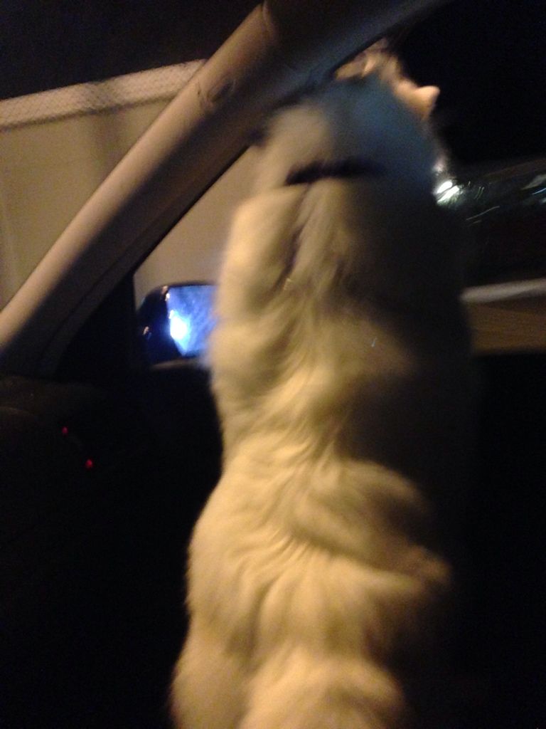 On the way here, she was pretty good. I had to keep her window open. If I shut it, she got mad. Glared at me. When I got into town and the speed limit was 25mph, I opened the window farther. She looooved it.