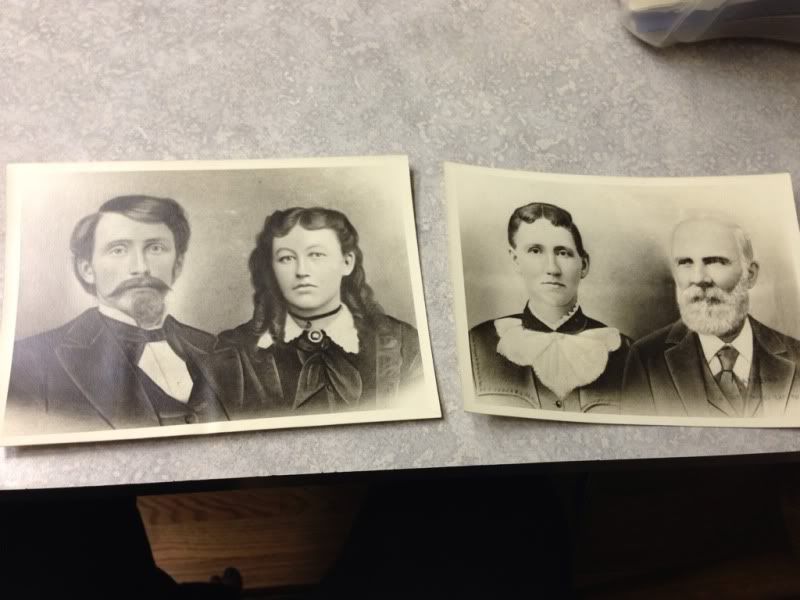 So here I am sitting in a hospital room hoping and praying my grandma will be ok. She's intubated. She looks so sad and helpless and pathetic. And it breaks my heart. The nurse said that they're concerned about taking the tube out. They're afraid she won't be able to breathe again. Hopefully she will be fine. I was cleaning my room last night and found some old pictures. Two of them were pictures of my great great great grandparents. One was my great grandmas maternal grandparents and the other was the same grandmas paternal grandparents, I believe. Or something like that. Married in 1877 and 1874.